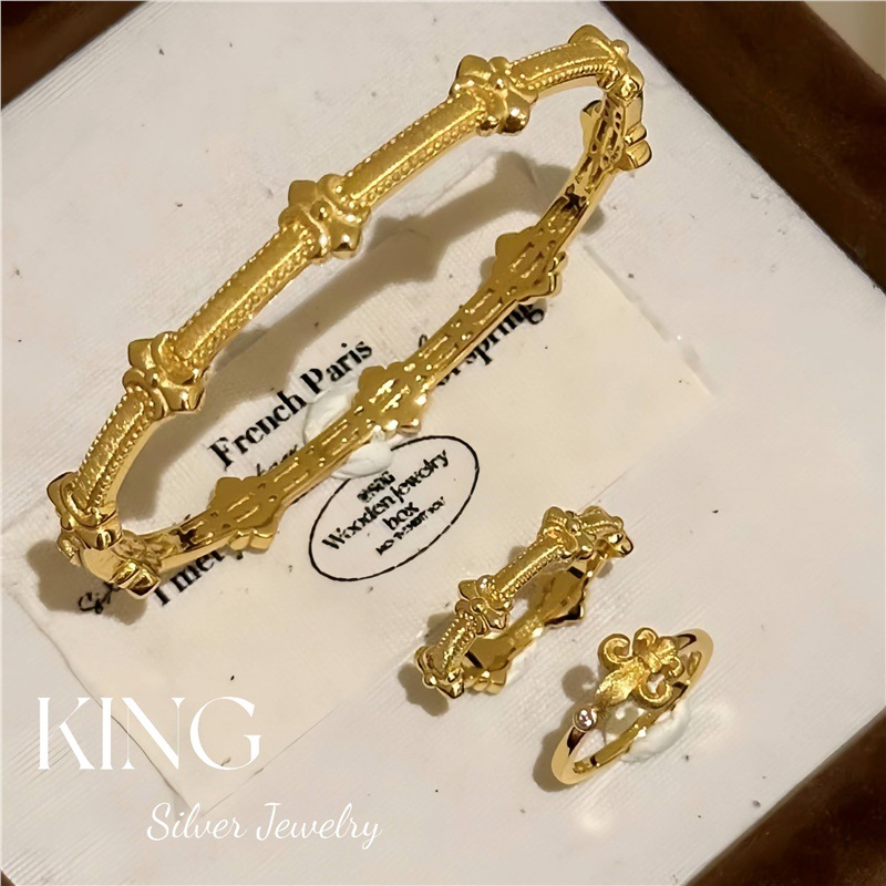 343 Iris Crown Bracelet Ring | S925 Silver Gold-Plated Heavy Jewelry Retro Luxury Style Set