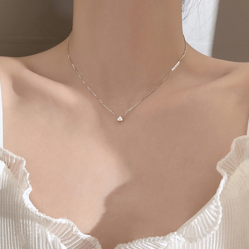 S925 Sterling Silver Necklace Single Diamond Women's Zircon Four-Claw 14K Gold Amazon New Hot Selling Ins Niche Accessible Luxury