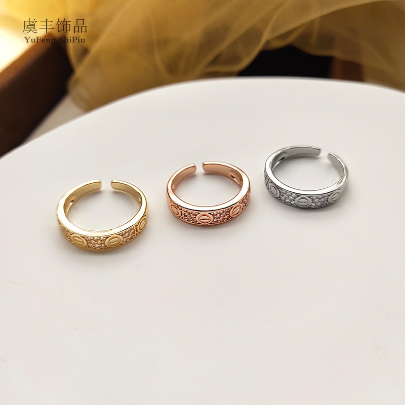 Decorative New Hand Jewelry Inlaid Fashionable Simple Double Row Diamond Rose Gold Accessible Luxury Titanium Steel Couple Ring
