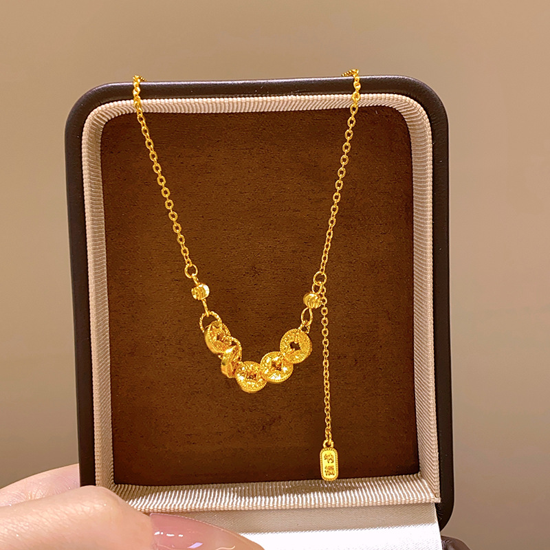 Ancient Gold Five-Emperor Coin Necklace for Women 2025 New Accessible Luxury Niche High-End Clavicle Chain Versatile for Daily Use