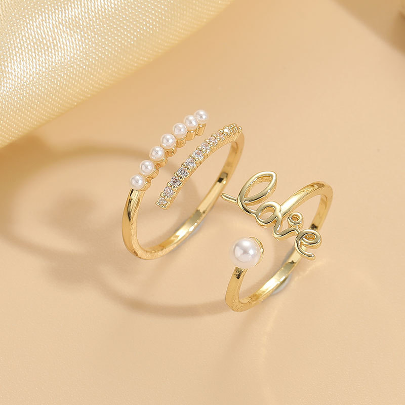 Cross-border Hot Selling love Zircon Pearl Ring ins Style Light Luxury Fashion Copper Plated 14K Real Gold Jewelry Jewelry Wholesale