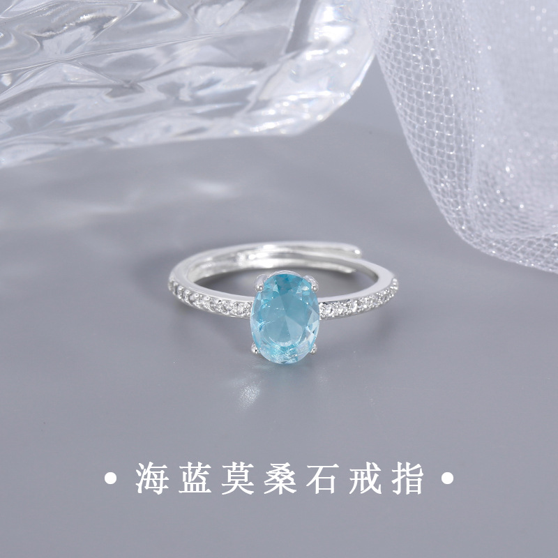 2024 explosions new! Aquamarine Pigeon Egg Ring Super Flash Gem Full Diamond Light Luxury High Sense