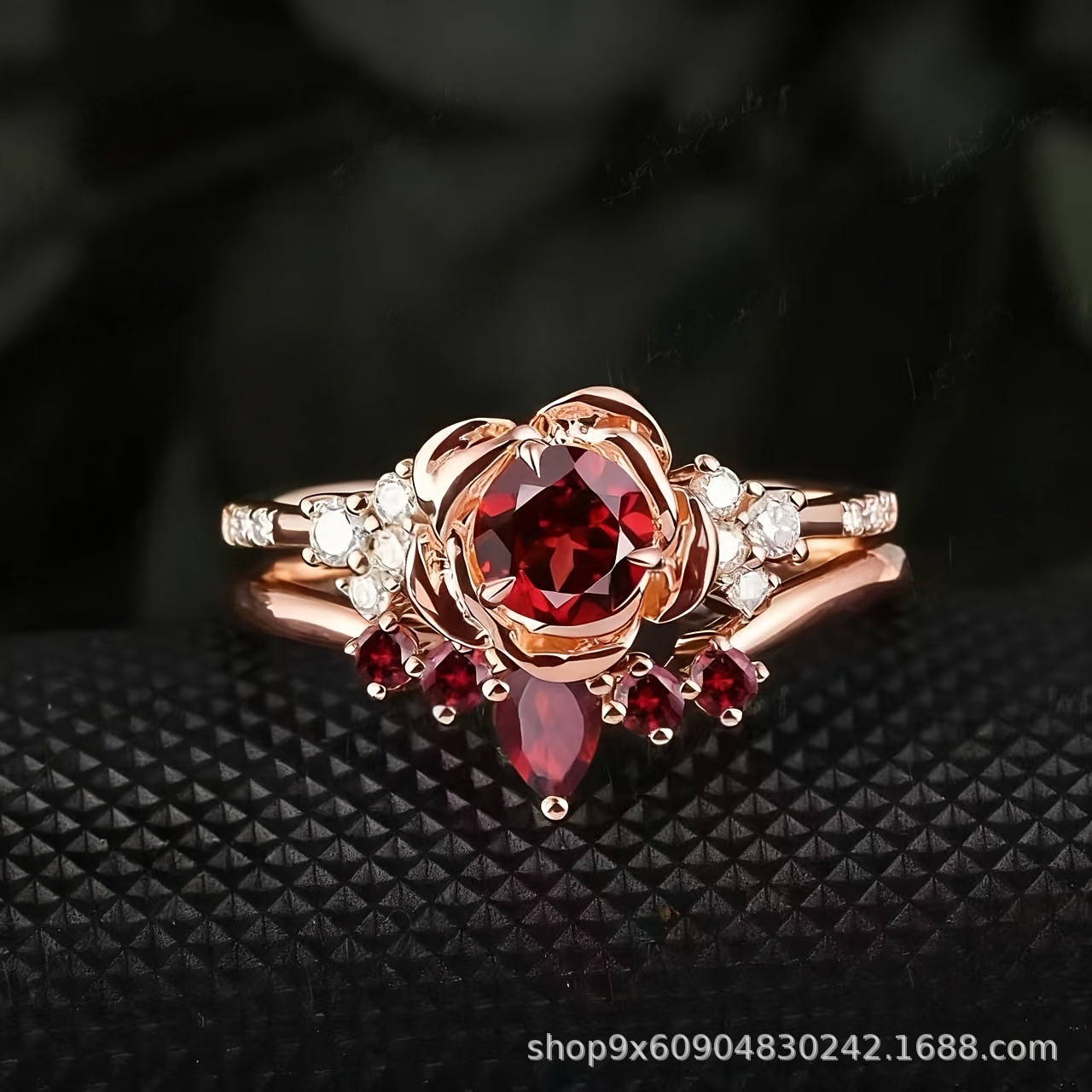 Cross-Border Hot-Selling Product Exclusively for European and American Internet Celebrities' Live Broadcasts, Rose Ruby Palace-Style Fashion 2-Piece Ring Set for Couples