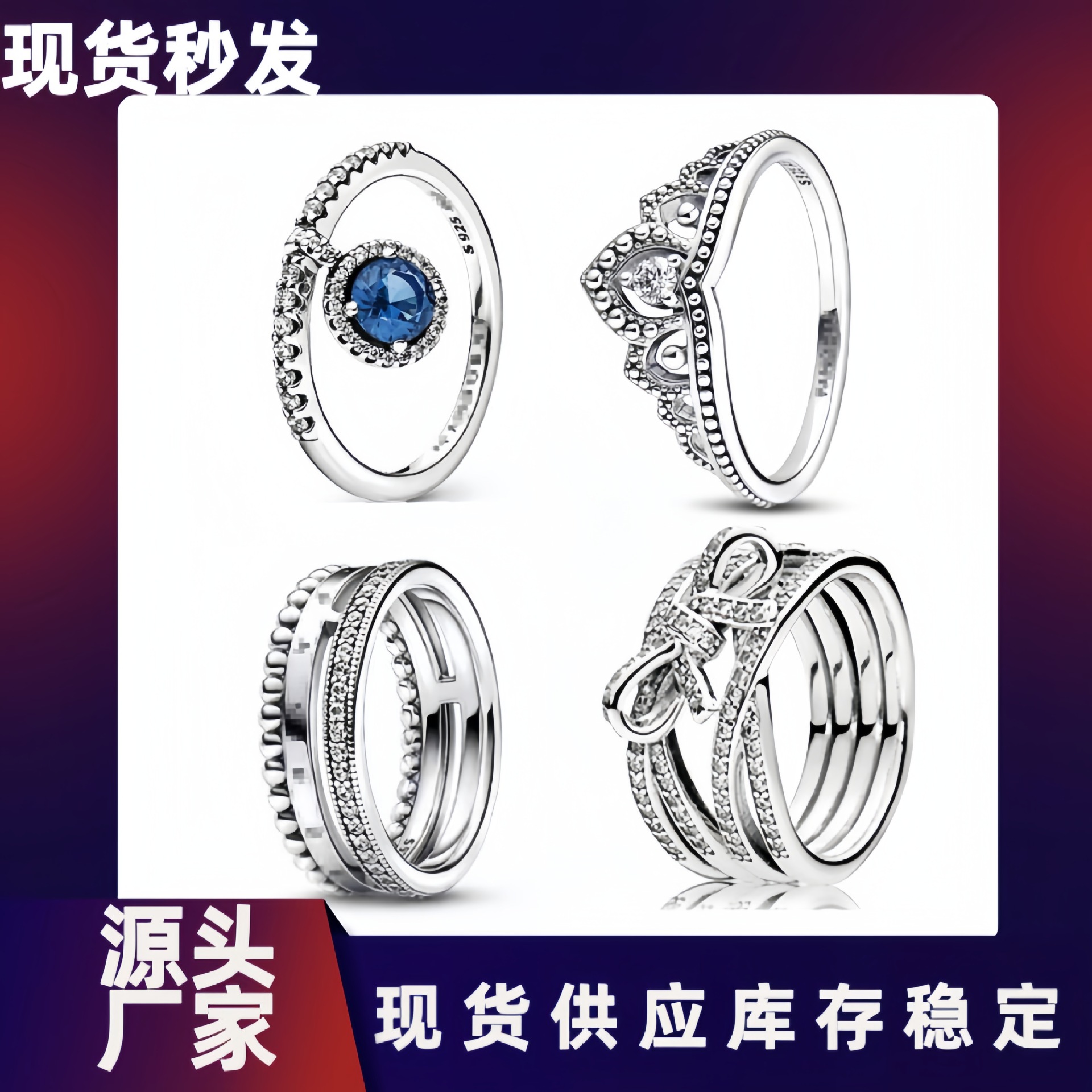 Pan's White Copper Retro Beaded Crown Image Ring Classic Logo Letter Women's Ring Set with Diamonds Accessible Luxury Elegant Silver Plated