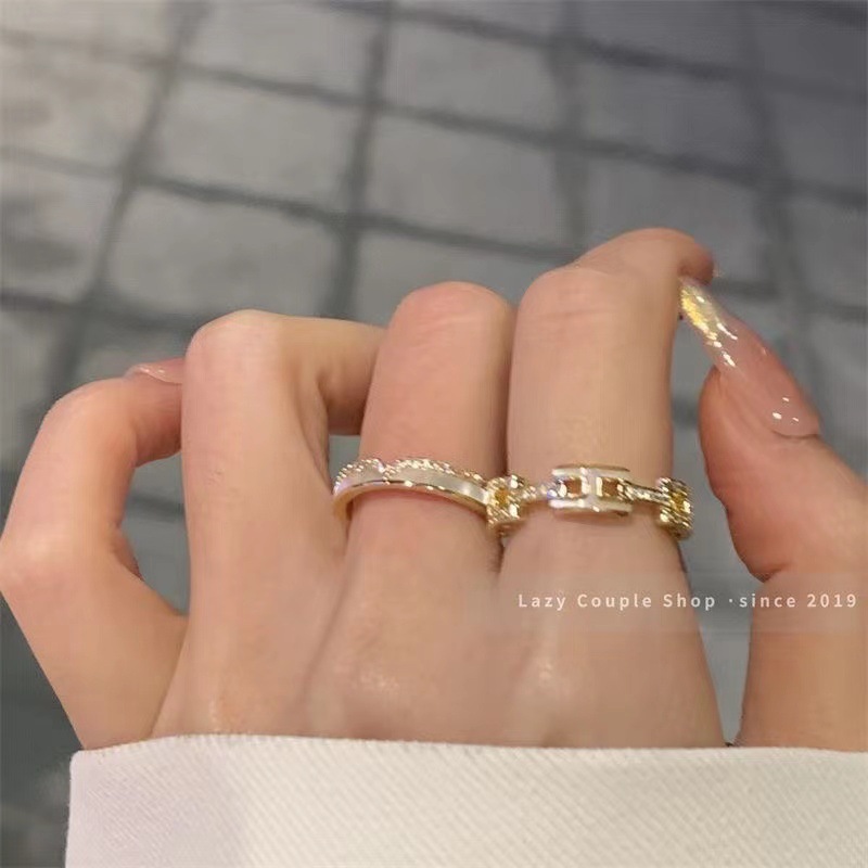 Big Explosions Light Luxury Socialite Shell Letter Exquisite Stacked Ring Women's Ins Niche High-end Fashion Ring