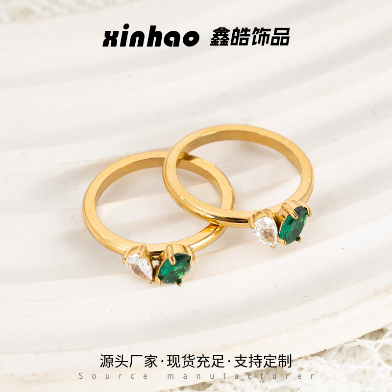 European and American Retro Accessible Luxury High-End Green Gemstone Ring Multi-Color Optional Small and Exquisite Double Zircon Splicing Ring