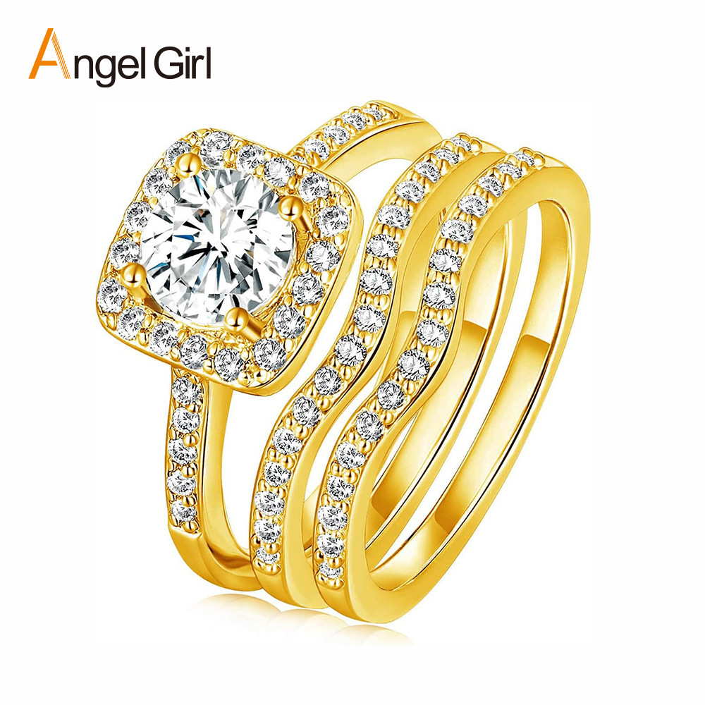 Europe and the United States cross-border gold square zircon three-piece stacked ring fashion luxury jewelry high-end factory wholesale