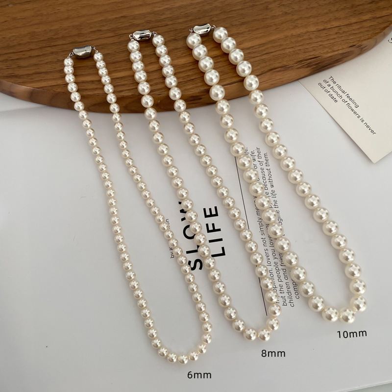 French Vintage Grey Imitation Shijia Pearl Gold Pin Buckle Necklace Women's High-end Elegant Clavicle Chain Fashion Necklace Chain