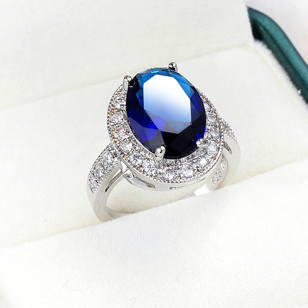 Cross-border Hot Sale Sapphire Blue Ring Light Luxury Zircon Jewelry Exaggerated Gem Ring Women Fashion Jewelry Wholesale