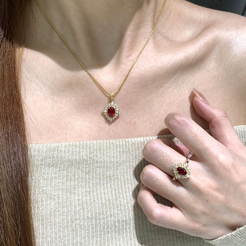 Xiaohongshu Winter New Year Jewelry Night Rose Red Corundum Zircon Ring Niche Light Luxury High-End Necklace for Women