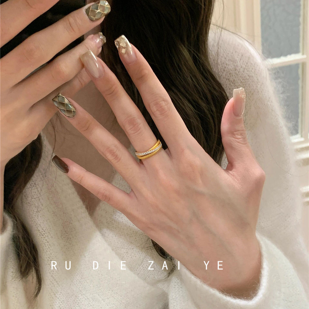 European and American Cross-Border Real Gold Electroplated Diamond Open Ring Accessible Luxury High-End Index Finger Ring Niche Fashion Elegant Hand Jewelry
