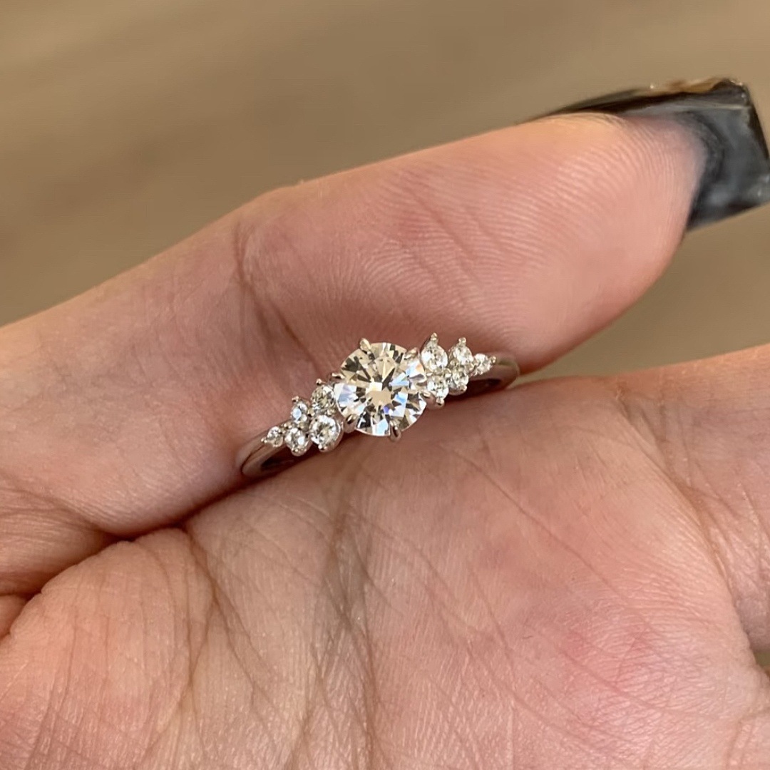 French Light Luxury Retro Romantic Five-Flower Diamond Ring Women's Light Luxury Four-Leaf Clover Diamond Sparkling Snowflake Ring Wholesale