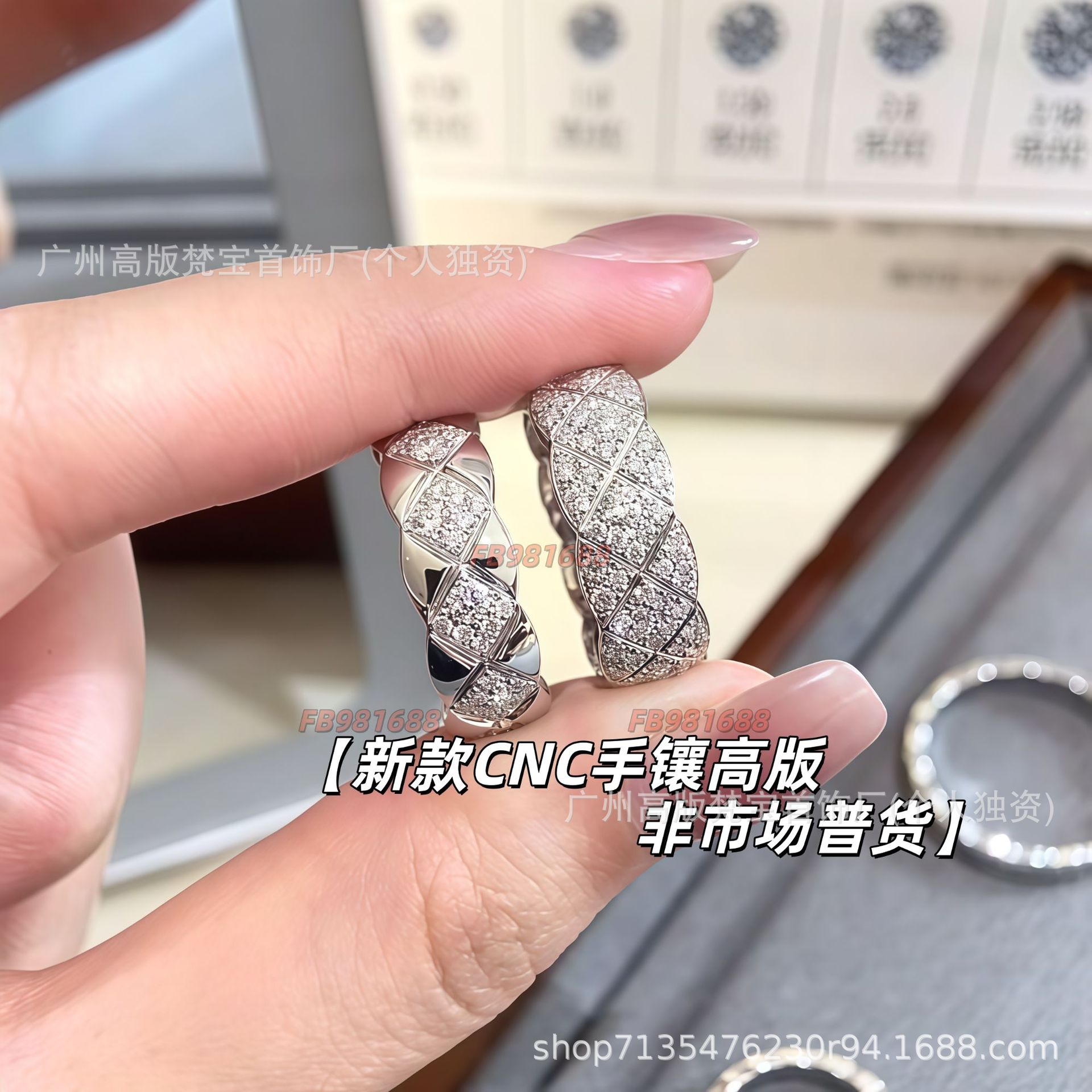 High-End Cnc Chanel-Style Coco Quilted Pattern Ring Plated with 18K Rose Gold, Internet Celebrity Full Diamond Index Finger Ring That Does Not Fade
