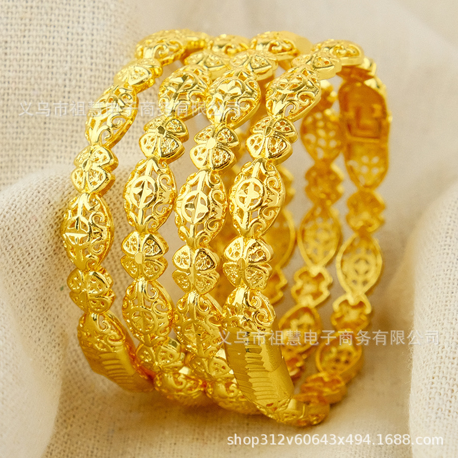 Wholesale Middle East Women Flower Hollow Design Bracelet Dubai Copper Gold Plated Luxury Bracelet
