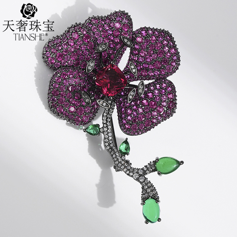 Tianshe Jewelry High-End Brand Royal Palace Retro Begonia Flower Brooch Antique Collection Luxury Jewelry