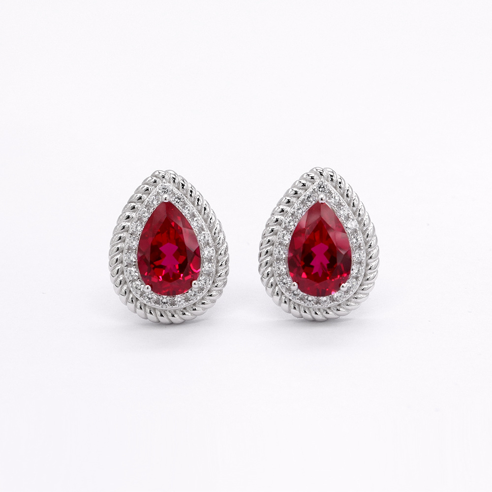 Luxurious and High-End Earrings 925 Silver Artificial Large Carat Pigeon Blood Red Colorful Treasure Drop-Shaped Elegant Women's Earrings