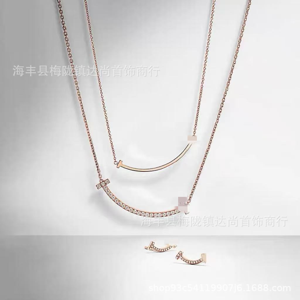 T Brand High-End Smile Necklace for Women, Plated with 18K Rose Gold, Fully Encrusted with Diamonds, Smooth Surface, Mini Cnc, Light Luxury Fashion Clavicle Chain