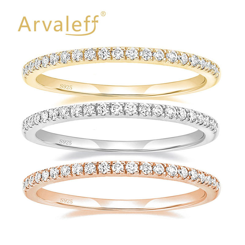 Arvaleff 925 Silver Ring Electroplated 14K Gold Diamond Ring for Women with Brilliant Row of Diamonds Stacked Rose Gold Cross-Border