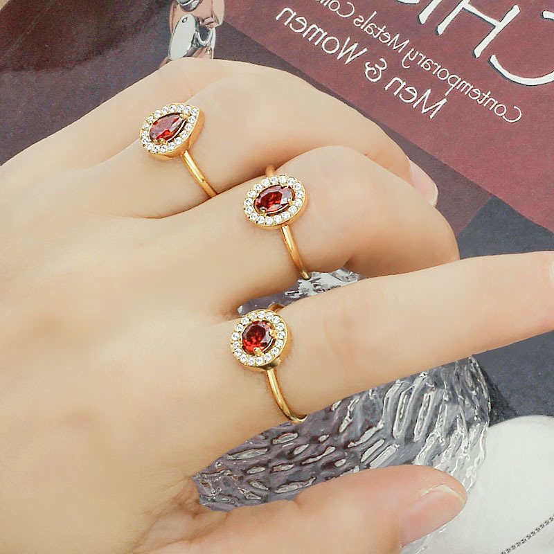 New European and American Ruby high-grade titanium steel ring fashionable light luxury exquisite stainless steel zircon ring does not fade