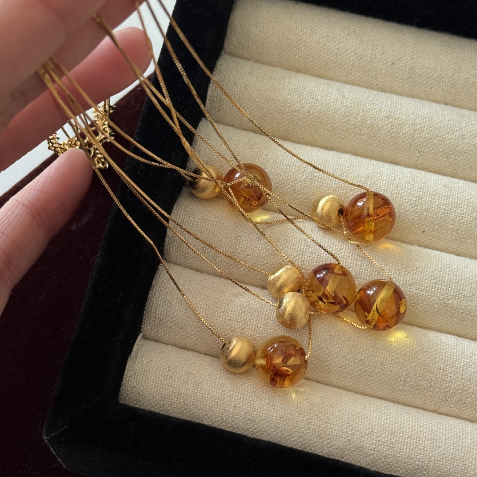 S925 Silver Gold-Plated Flower Amber Necklace, Fashionable and High-End Autumn and Winter Clavicle Chain Design, Accessible Luxury
