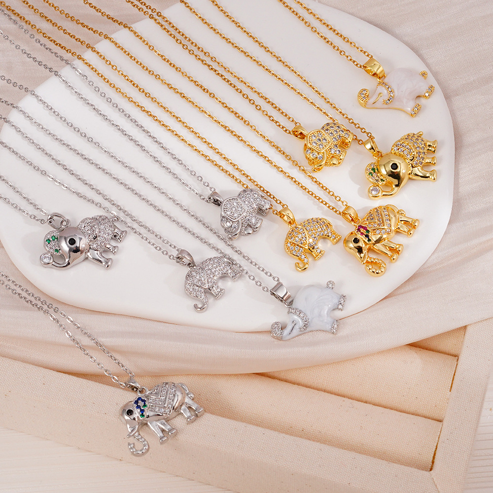 European and American Cross-Border Popular Elephant Necklace, Feminine and Versatile Copper Inlaid Zircon Electroplated 18K Color-Preserving Hip-Hop Clavicle Chain