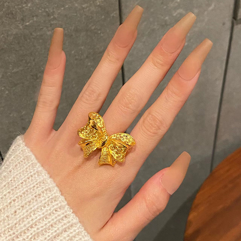 Gold shop with European and American gold big bow ring women's opening temperament ring light luxury Joker jewelry wholesale