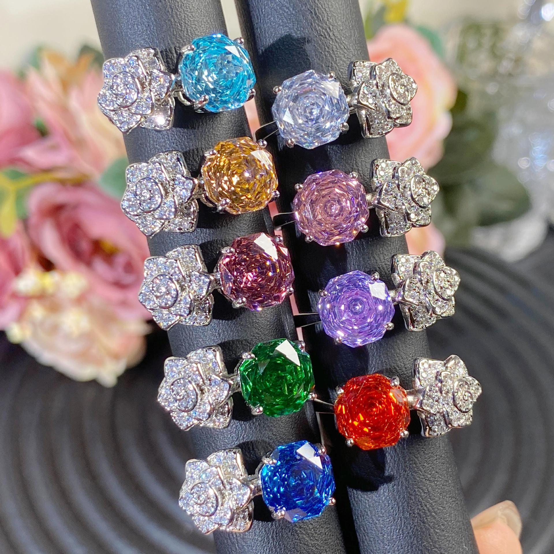 Cross-border hot camellia imitation color treasure ring women light luxury European and American wind high carbon diamond finger ring live a generation of hair