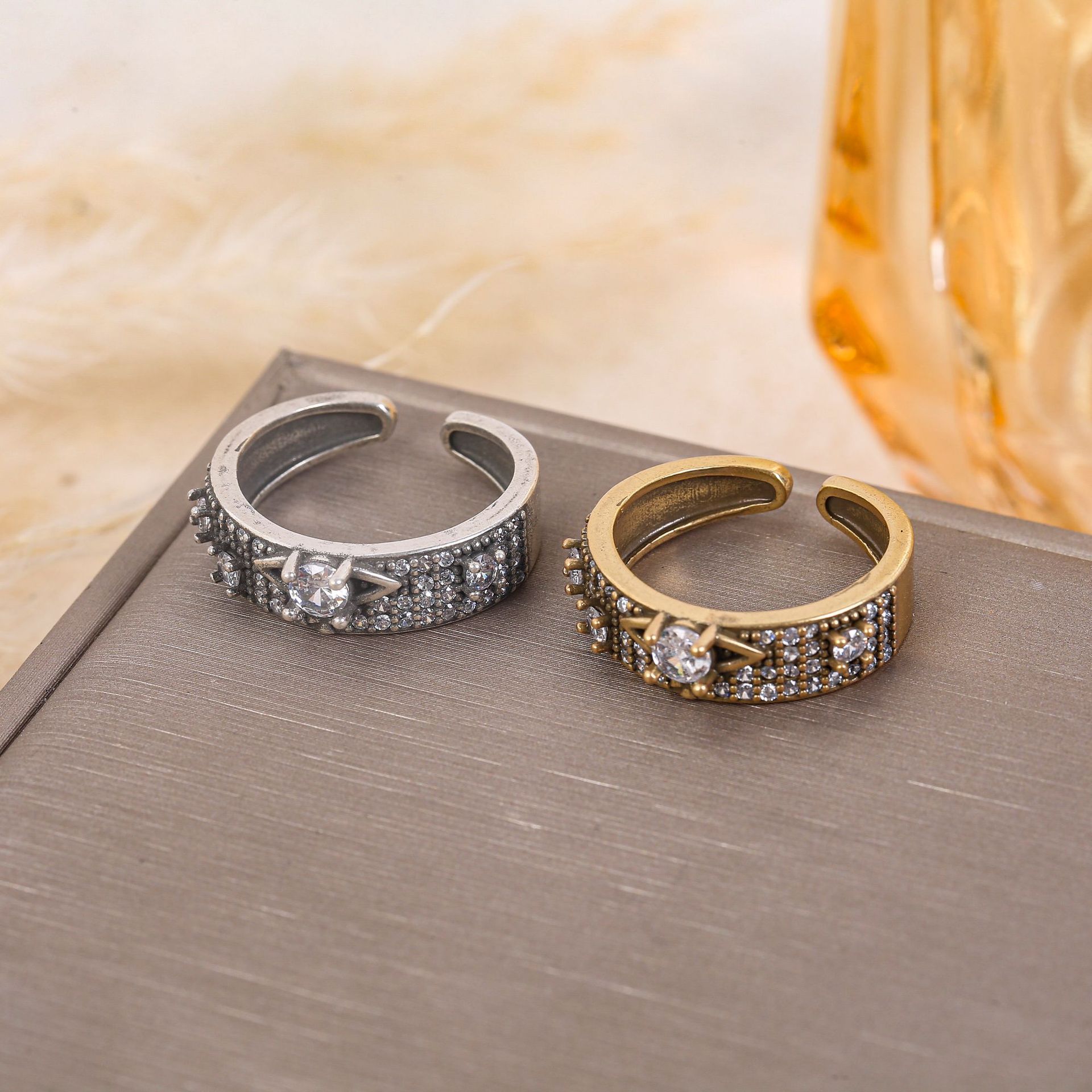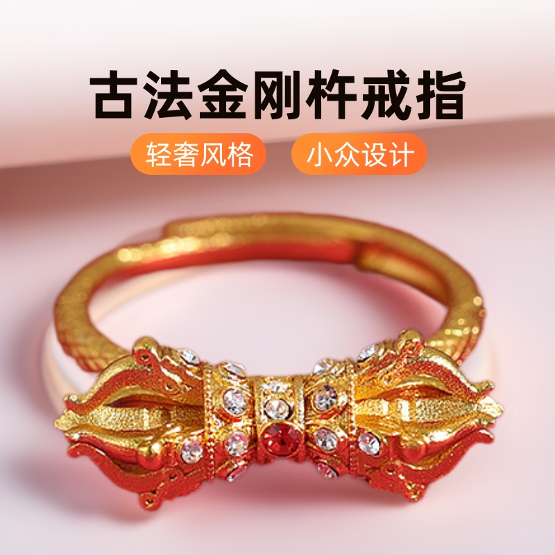 Ancient Vajra Pestle Diamond Ring for Women, Niche Design, Light Luxury, High-End Feel, 2025 New Popular Open Ring