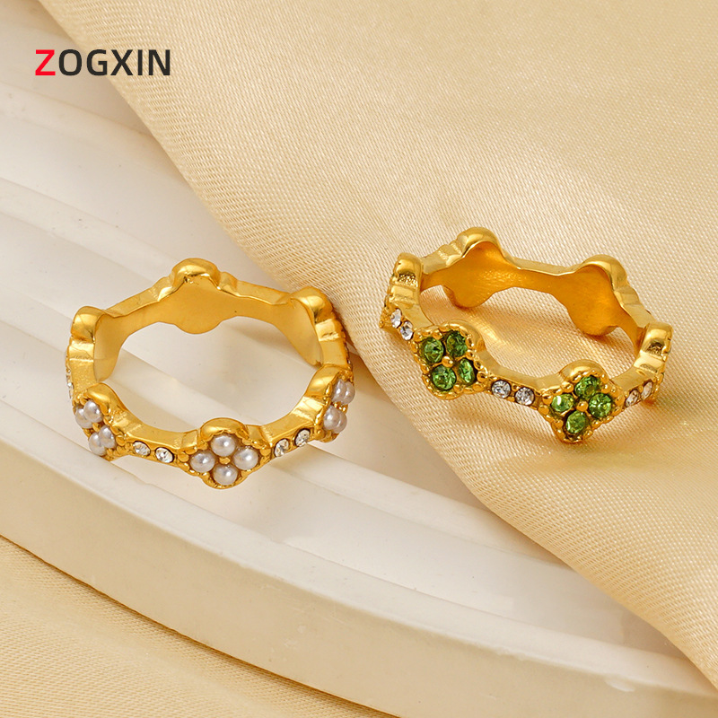 European and American French Retro 18K Real Gold Plated Zircon Pearl Ring Women's Ins Niche Light Luxury High-end All-match Jewelry