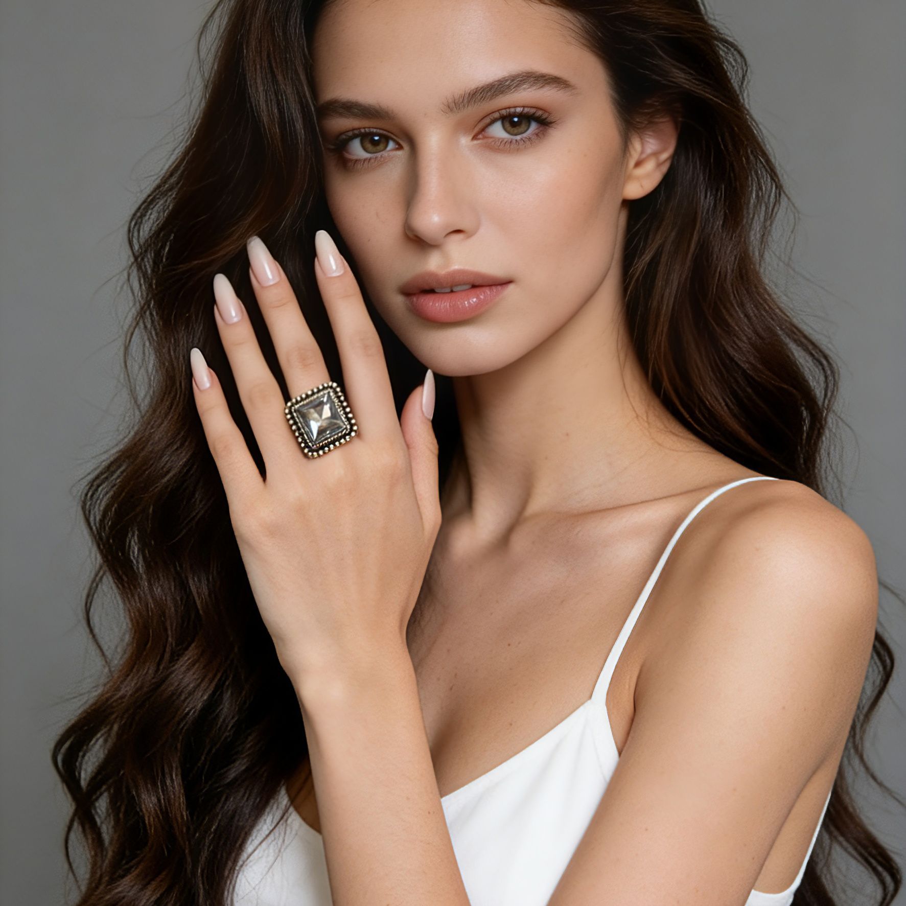 Za Cross-Border Fashion Geometric Alloy Square Diamond Open Adjustable Women's Ring Exquisite Elegant Versatile Style Earrings