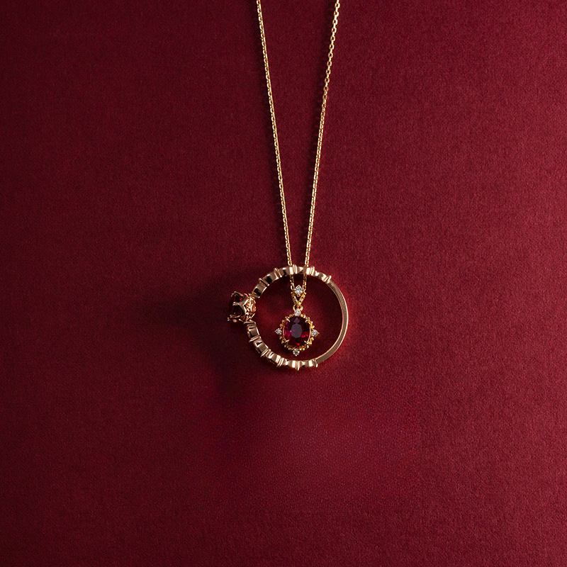 New Chinese Style Light Luxury Sparkling Rose Red Corundum Passepartout Dual-Use Necklace High-End Three-Row Diamond Ruby Ring for Women