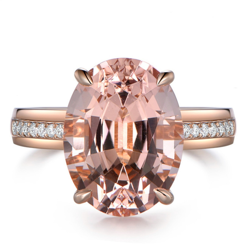 Hot Selling Simple Diamond Natural Morganite Ring, Elegant and Popular 18K Gold Plated Orange Pink Diamond Colored Gemstone Ring