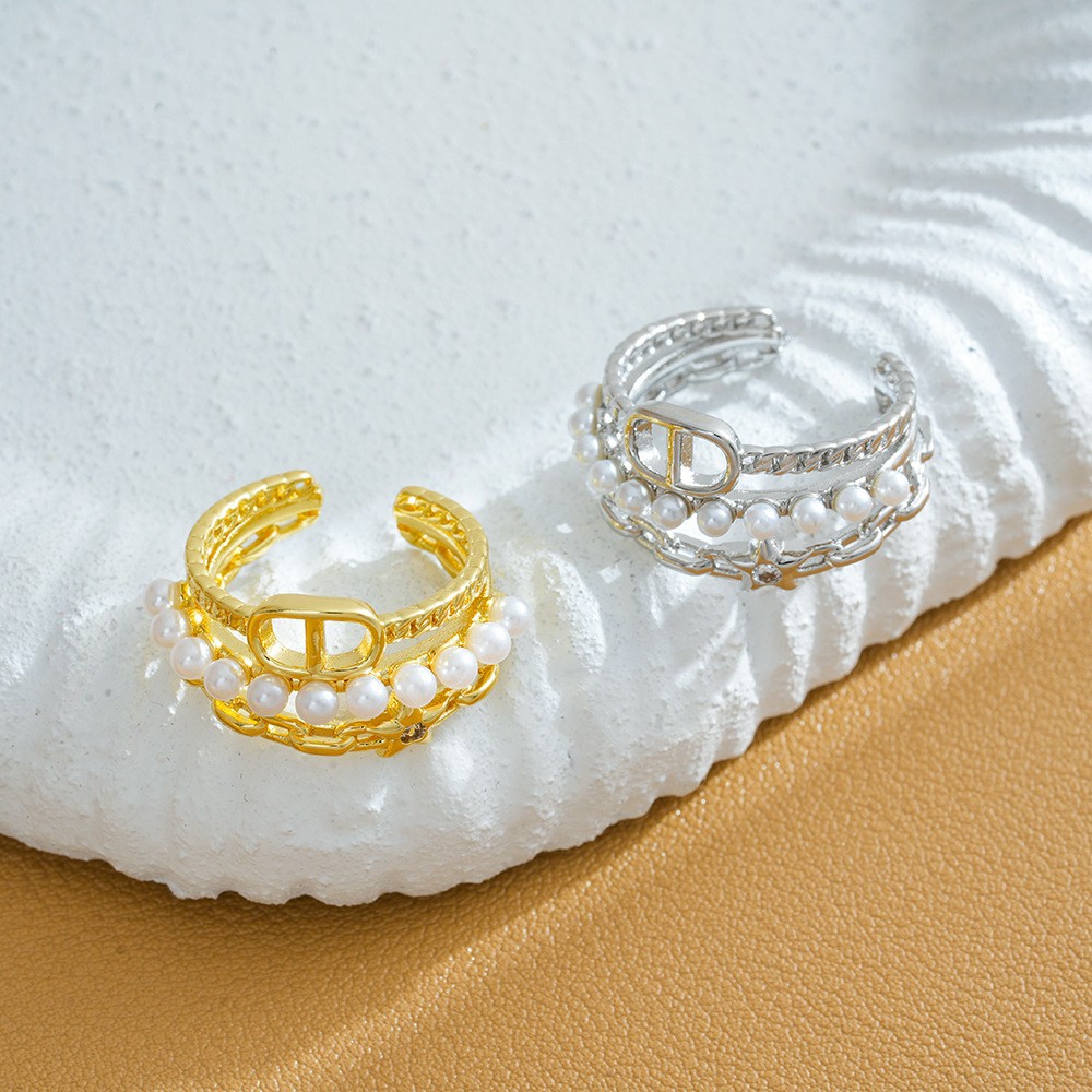 European and American Hot-Selling Light Luxury Pearl Letter Cd Ring for Women, Simple and Fashionable Versatile Open-Set Diamond Hand Jewelry Wholesale