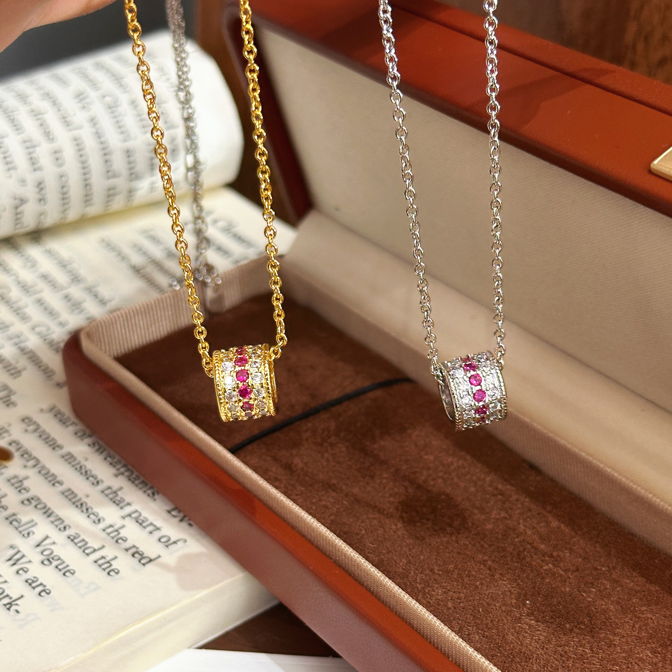 Trendy Red Book Inlaid Red Jade Necklace for Women, Luxurious Socialite Style Clavicle Chain, High-End Versatile