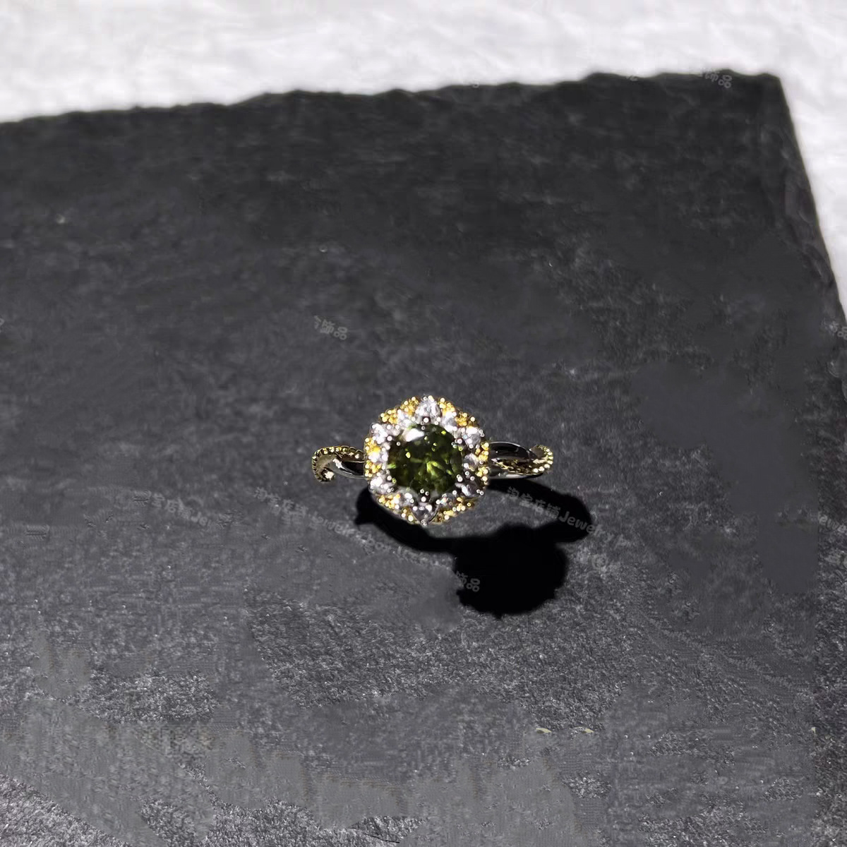 Vintage Light Luxury Sparkling Diamond Hand-Held Flower Olive Green Colored Gemstone Brushed Wrap Ring Fashion Versatile Elegant Stackable Ring