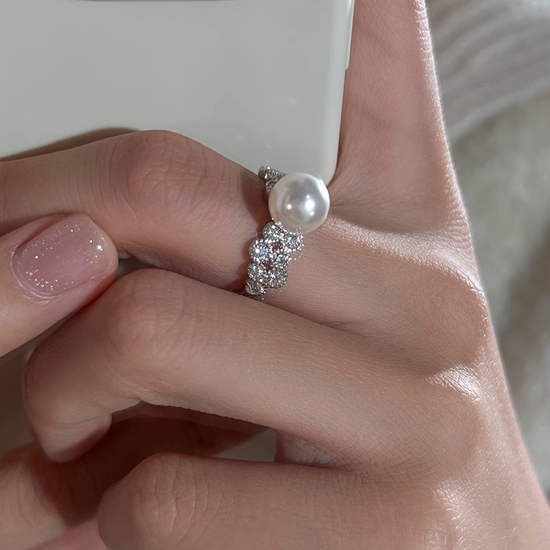 Fang Tangjia Light Luxury Zircon Shijia Pearl Ring High-grade Elegant Ring Food Finger Ring New Style
