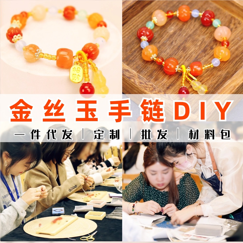 Gold Silk Jade Bracelet DIY Handmade Material Package High-End National Style Jade New Chinoiserie Bracelet Elegant National Day Warm-Up