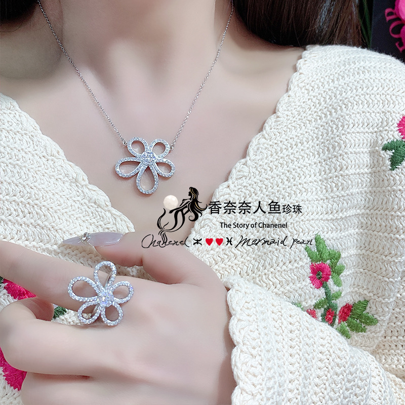 Cene Luxury Brand High-end Design Full Diamond Flower Necklace Earrings Niche Exaggerated Super Flash Gem Ring for Women