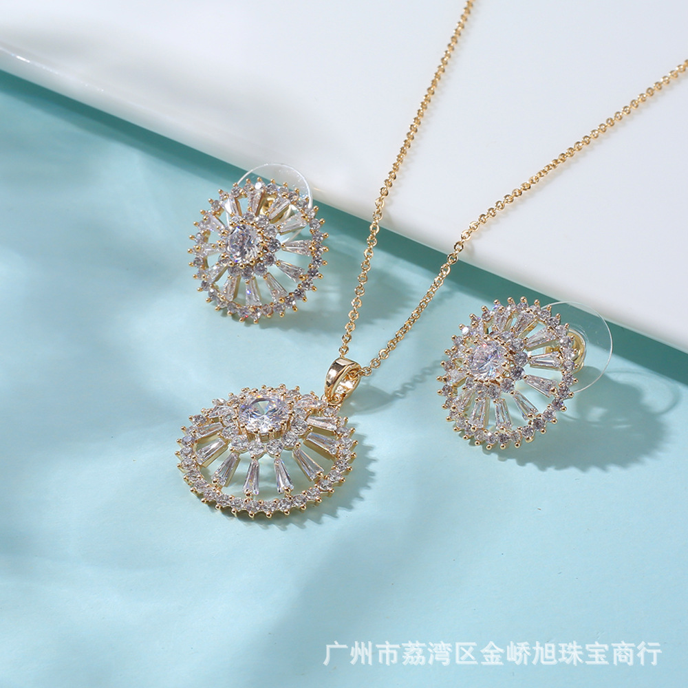 Cross-border luxury new diamond electroplated micro-inlaid Women's Classic necklace earrings jewelry suit high quality