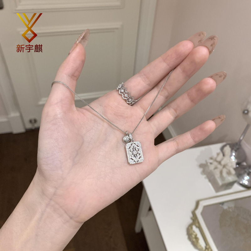 French-Style Full Diamond Necklace for Women, Light Luxury High-End Temperament Collarbone Chain, Super Shiny Personality Trendy Chopard Chain Neck Chain