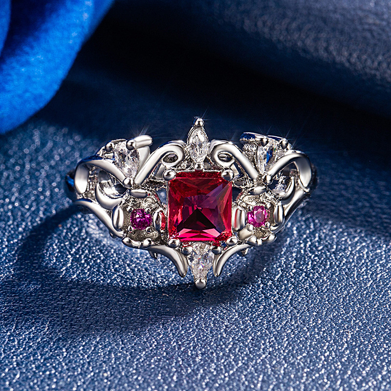 Light Luxury High-End Mid-Century Style Colorfulful Ruby-Encrusted Three-Row Diamond Ring New Fashion Luxury Index Finger Ring