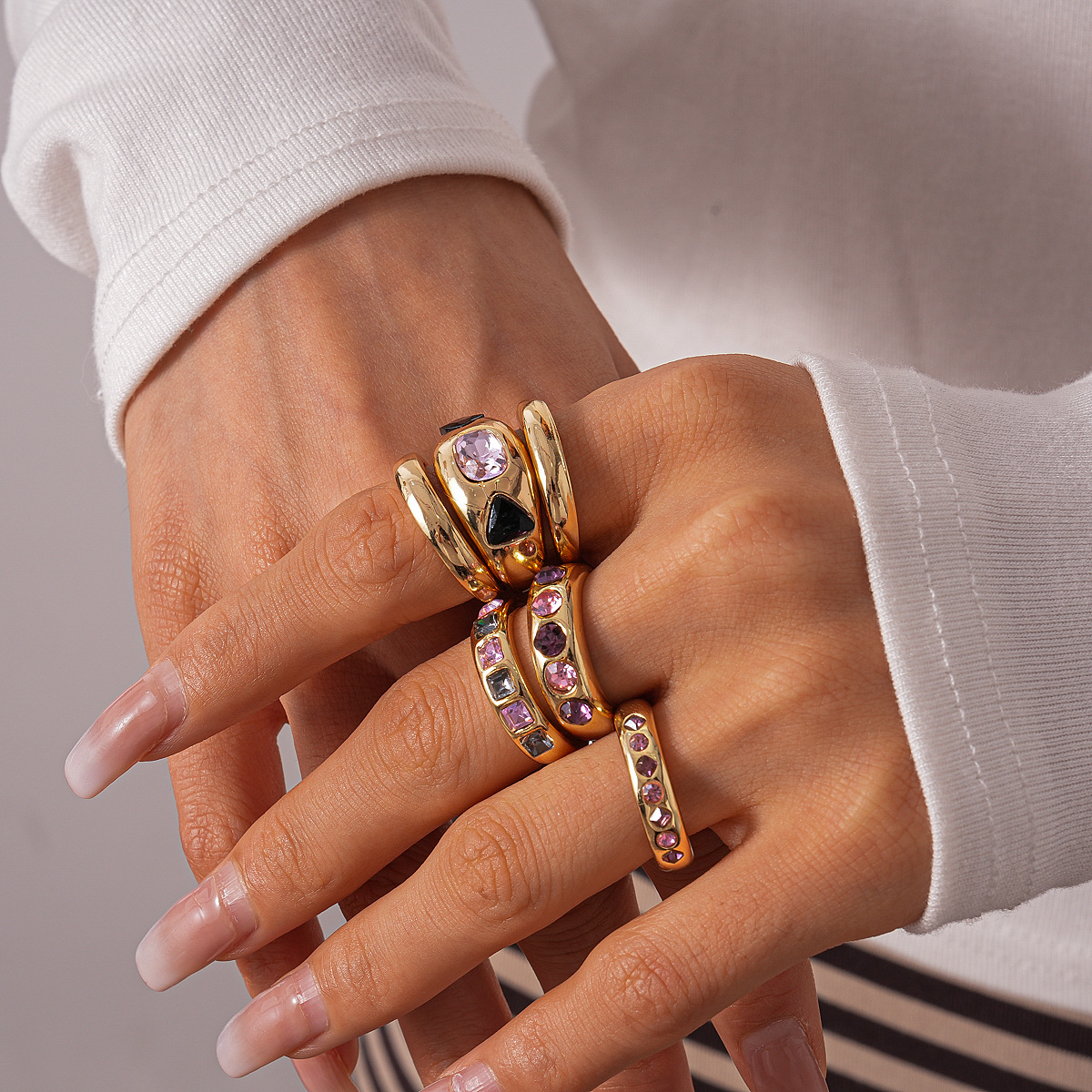 Cross-Border Hot-Selling New Model Factory Direct Batch Electroplated Real Gold Super Flash Oval Zircon Ring Women's Light Luxury High-End Ring