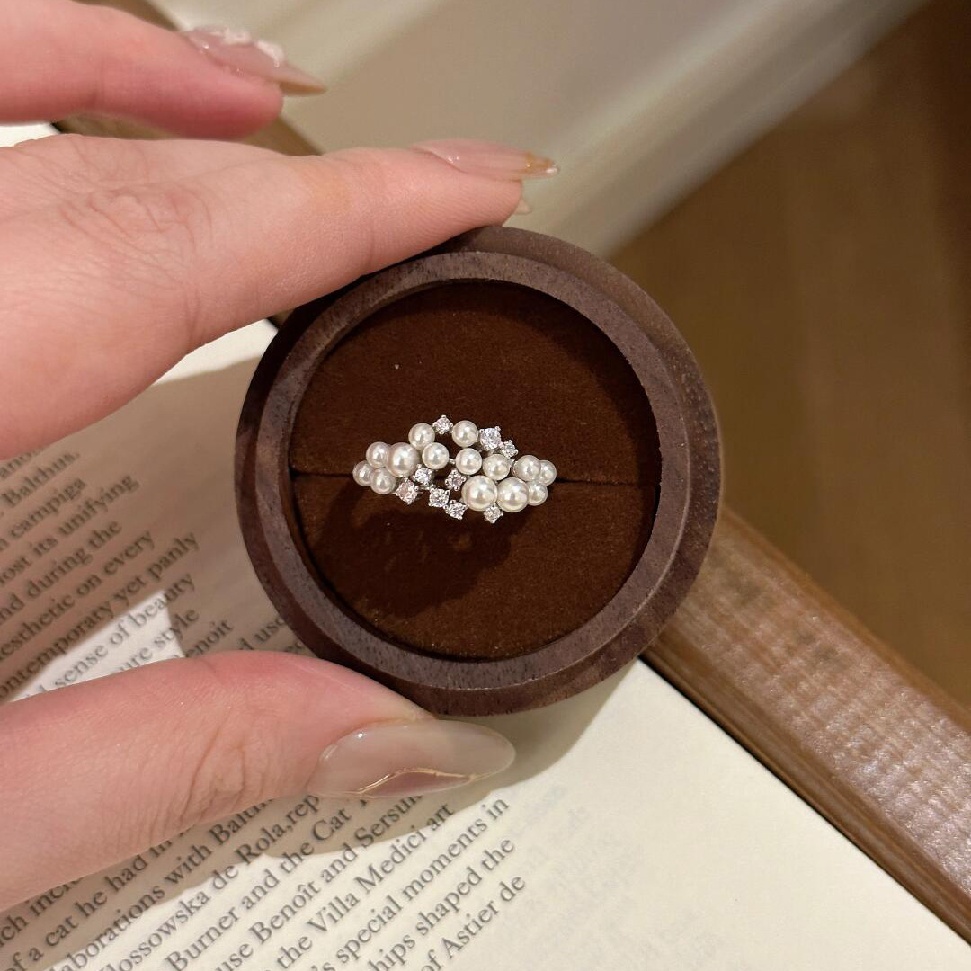 French Light Luxury Design Sense Gestapo Pearl Zircon Open Ring Exquisite High-end All-match Elegant Finger Ring