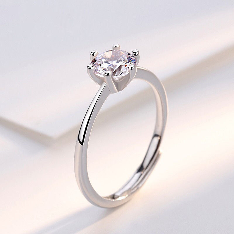 Six-Claw Ring Women's Wedding Couple Seeking Wedding Ring Simulation Diamond Ring Imitation Diamond Fashion Personality Japanese Light Luxury Internet Celebrity