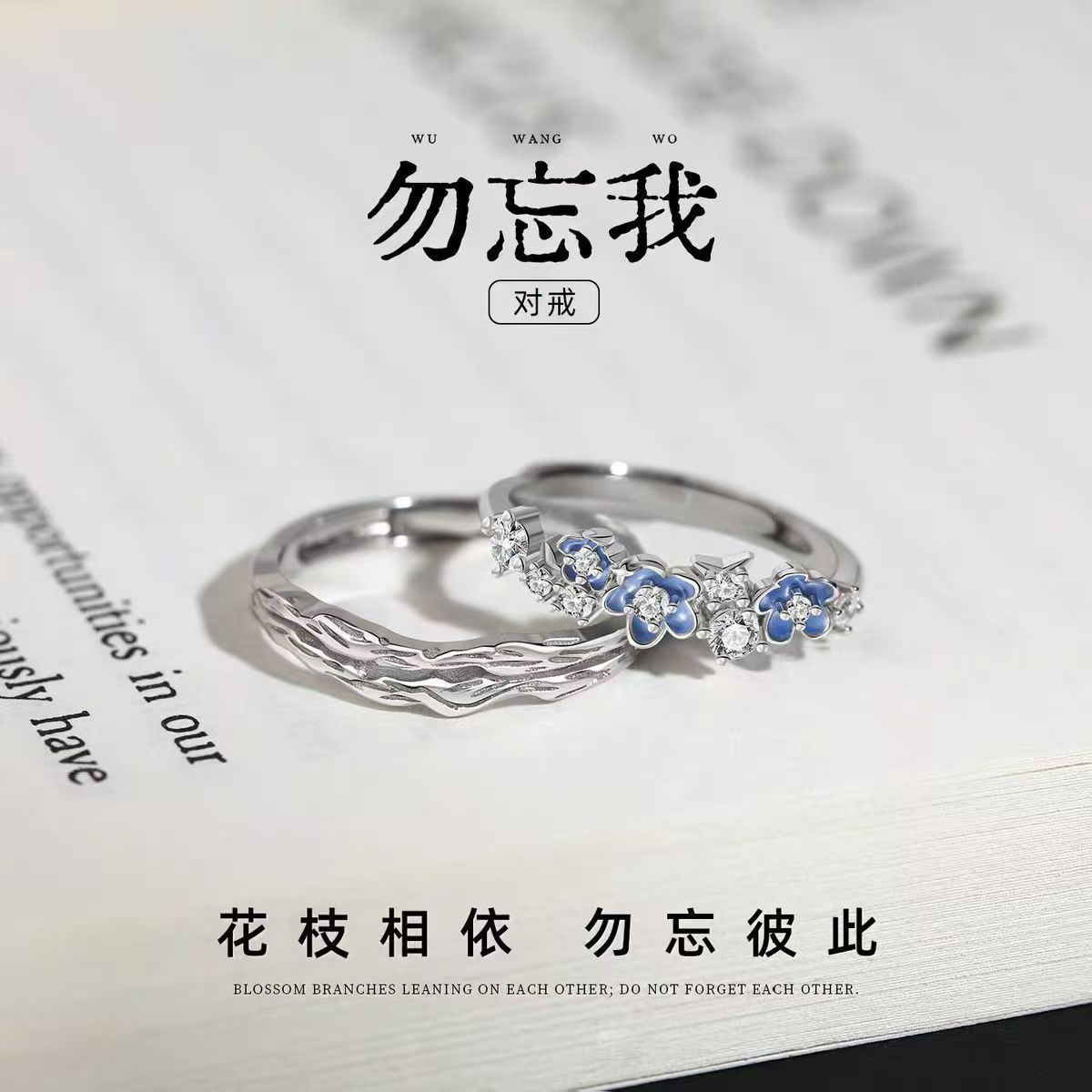 Mingjie's "Forget Me Not" Couple Rings, a Pair of Rings, Niche Design Anniversary Gifts for Boyfriend and Girlfriend