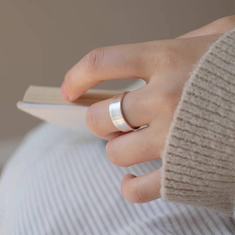 Wide-Faced Ring for Women, High-End Niche Design, Accessible Luxury Index Finger Open Ring, Brushed Surface, 2024 New Trend