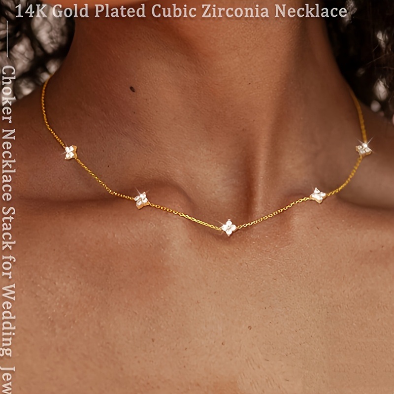 Fashionable and Elegant Lucky Four-Leaf Clover Micro-Inlaid Zircon Necklace with Baby's Breath, High-End and Versatile Clavicle Chain Jewelry