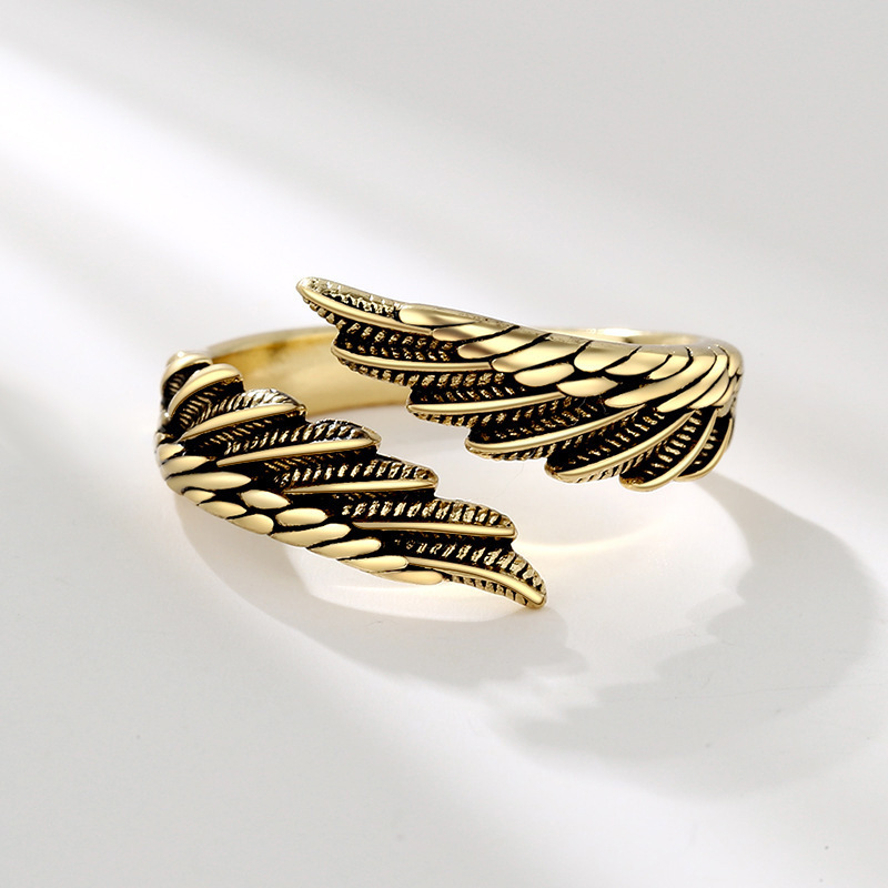 Angel Wings Wings Ring European and American New High Sense Creative Copper Plated Ancient Gold Men's and Women's Couple Ring