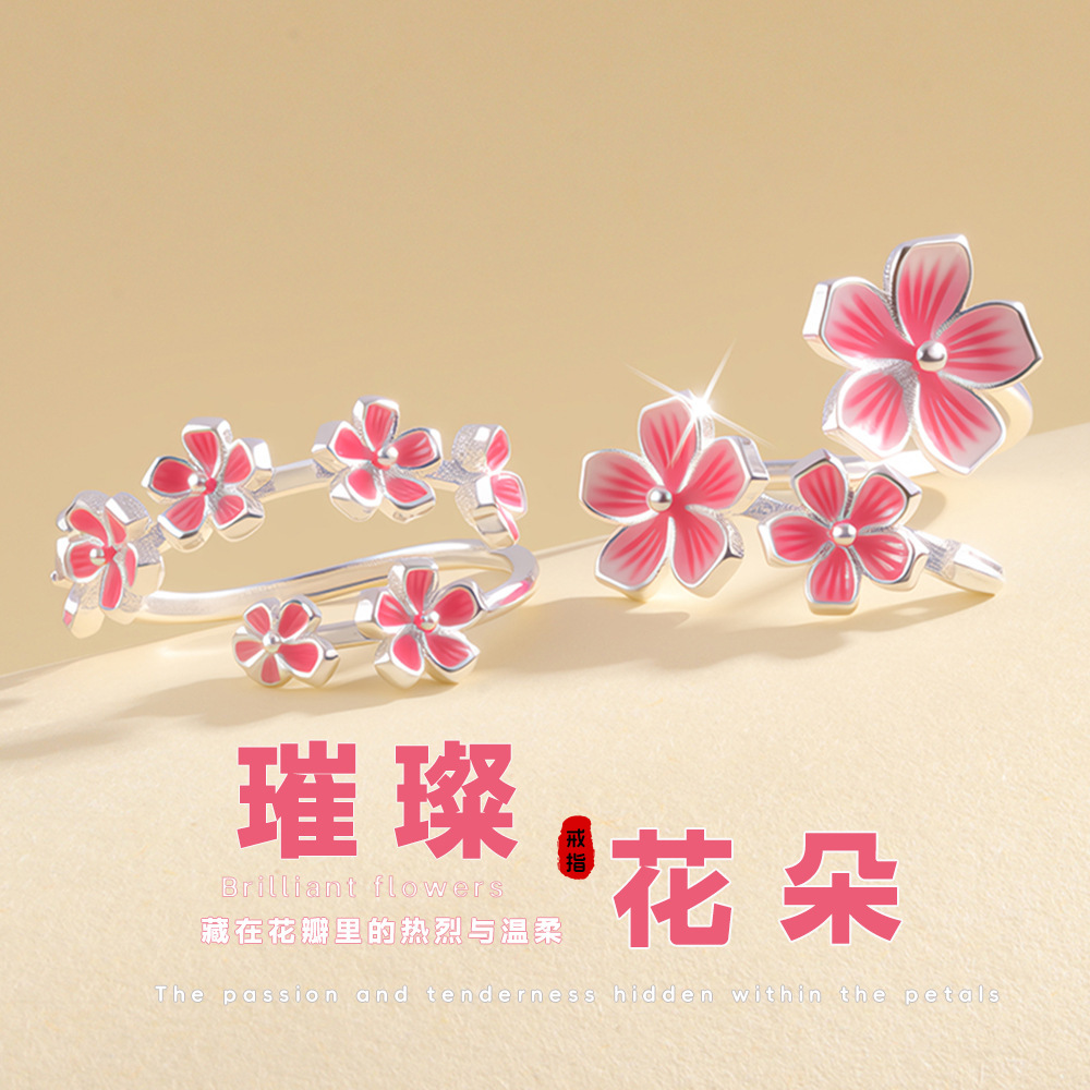 Peach Blossom Ring for Women, Simple and High-End, Pink Flower Ring, Niche Accessible Luxury, New Chinoiserie, Versatile Index Finger Ring