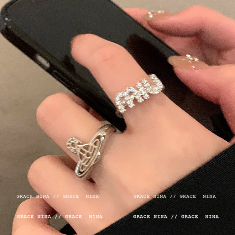 Niche design flash diamond letter ring female light luxury high-grade index finger ring ins personality fashion couple ring male